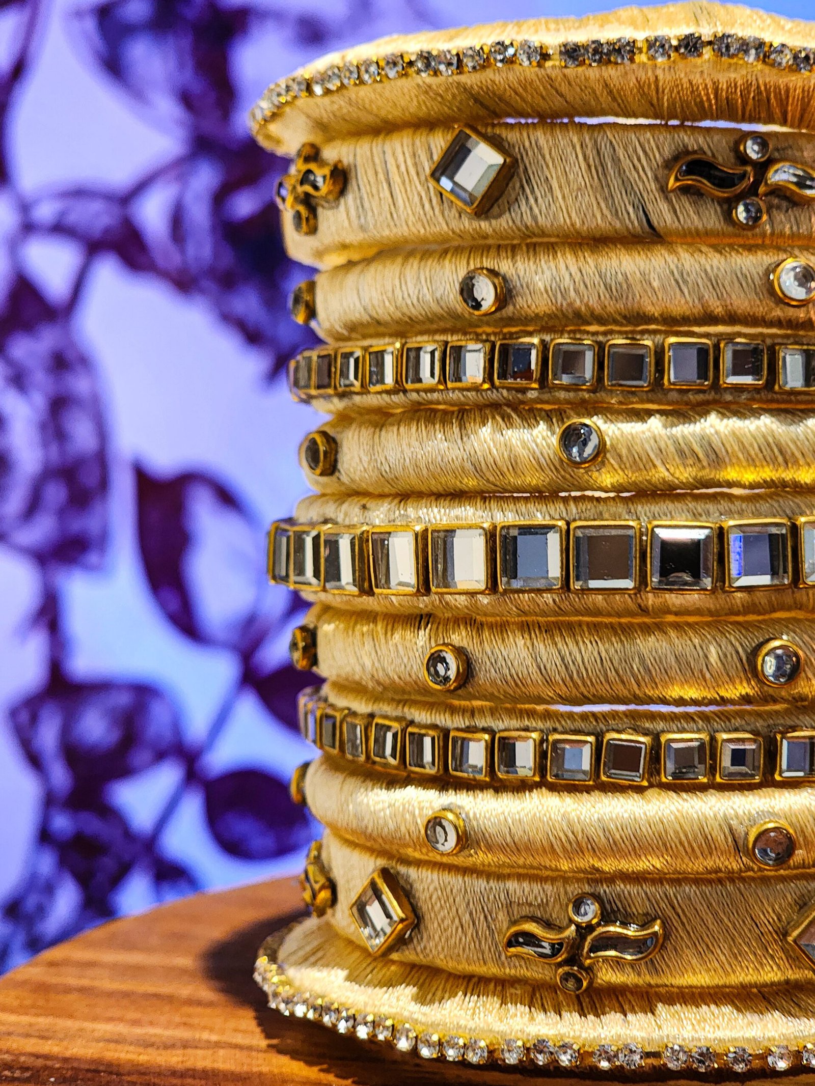Signature Beige Velvet Bangles with Hand-Embroidered Motifs & Crystal Accents
